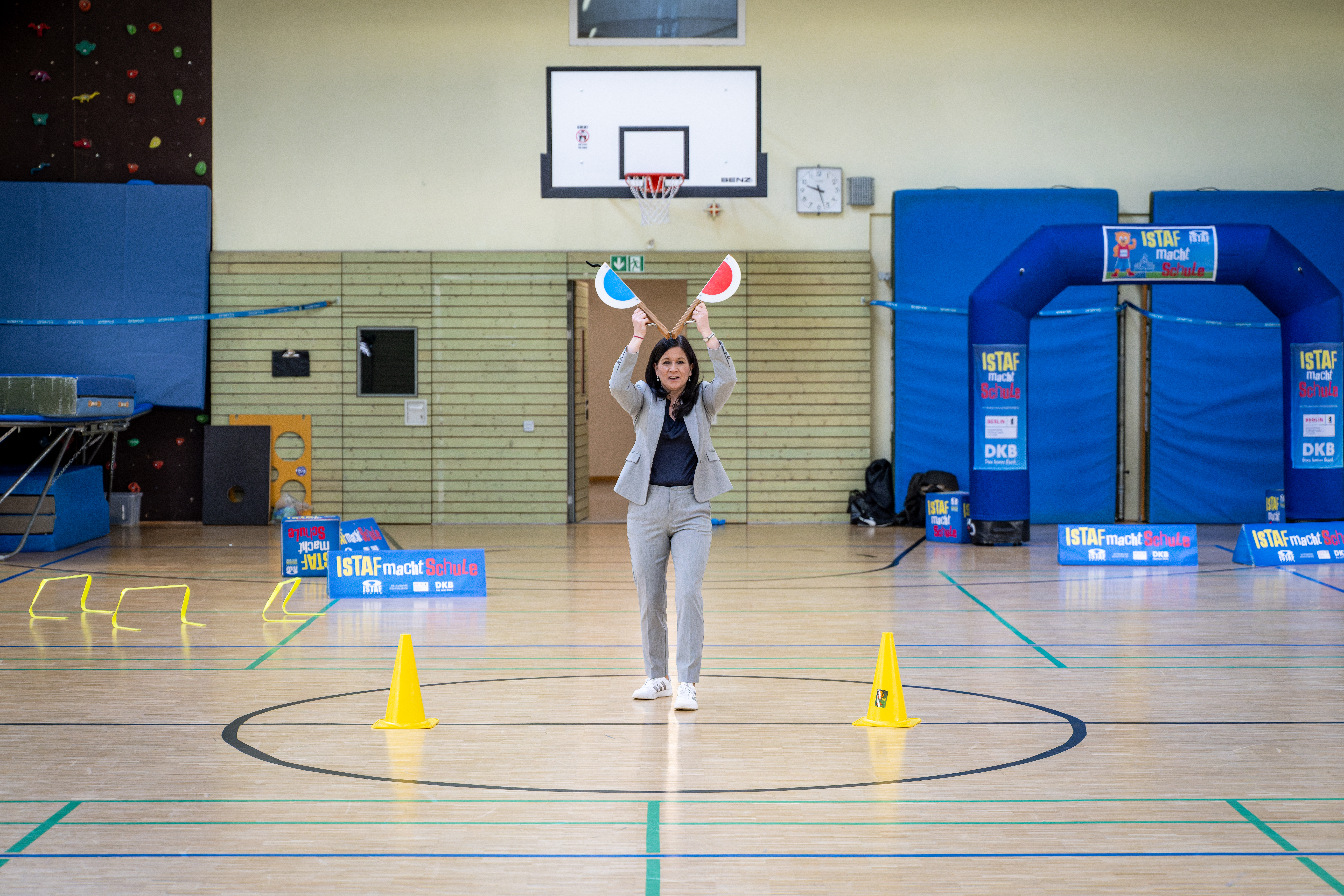 35 Berliner Schulen hat das Team von ISTAF MACHT SCHULE in diesem Jahr bereits besucht – am 29. November 2023 bekam es prominente Unterstützung: Katharina Günther-Wünsch, Berlins Senatorin für Bildung, Jugend und Familie, war an der Walter-Gropius-Schule in Neukölln zu Gast und begleitete eine kreative Sportstunde von ISTAF MACHT SCHULE.