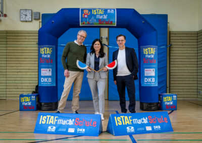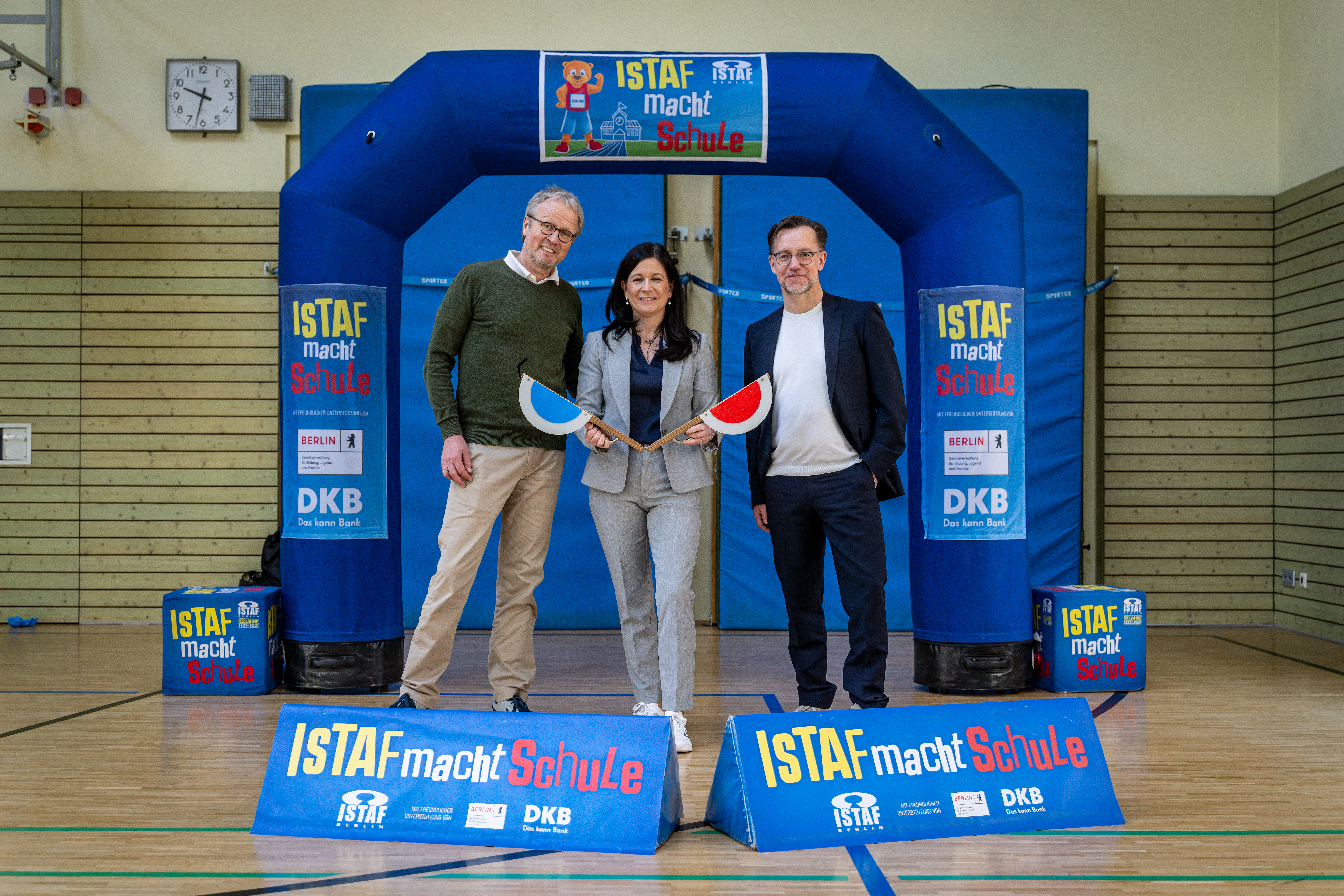 Die DKB ist seit 2025 Partner des Projekts ISTAF MACHT SCHULE und unterstützt es finanziell sowie mit nachhaltigen Medaillen und kleinen Geschenken für die Kinder. Jan Walther, Finanzvorstand bei der DKB: „Wir sind gerne Partner des Projekts, weil es eine tolle Verbindung zu unserem Inklusionsbetrieb und unserem Sportengagement darstellt. Beides ist uns als Bank sehr wichtig. Wir glauben zudem auch, dass ISTAF MACHT SCHULE ein guter Impuls sein kann für die Bewerbung um Olympische und Paralympische Spiele in Berlin.“