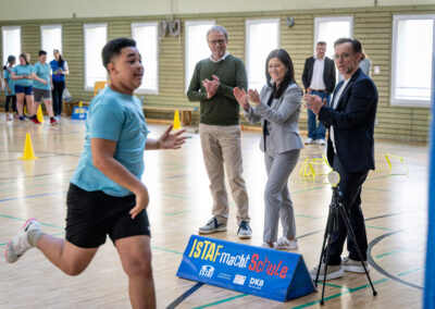Bildungssenatorin Katharina Günther-Wünsch unterstreicht die Bedeutung von Bewegungsangeboten und Sport im Unterricht: „Bewegung ist immer wichtig für unsere Schülerinnen und Schüler. Sportbewegung ist für alle da und der Sport hat ja auch den größten Integrationsmoment, das sieht man heute auch hier an der Helene-Haeseler-Schule besonders. Darum ist es mir auch wichtig, dass wir das Projekt ISTAF MACHT SCHULE Jahr für Jahr ausbauen.“