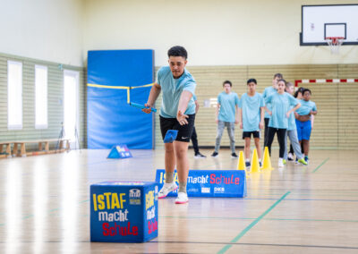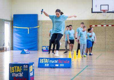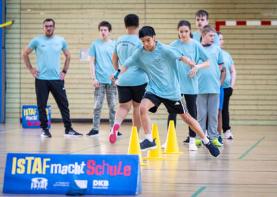 ISTAF MACHT SCHULE wurde 2021 zum 100. Geburtstag des Internationalen Stadionfests (ISTAF) ins Leben gerufen. Seitdem wurden bereits mehr als 60 Berliner Schulen besucht und weit über 6000 Schulkinder trainiert. Ausgebildete Trainerinnen und Trainer zeigen in einem 90-minütigen Programm, wie viel Spaß Leichtathletik machen kann. „Wir haben die Herausforderung angenommen, Kinder von den Handys und Tablets wegzuholen und sie stärker in Bewegung zu bringen“, so ISTAF-Meetingdirektor Martin Seeber.